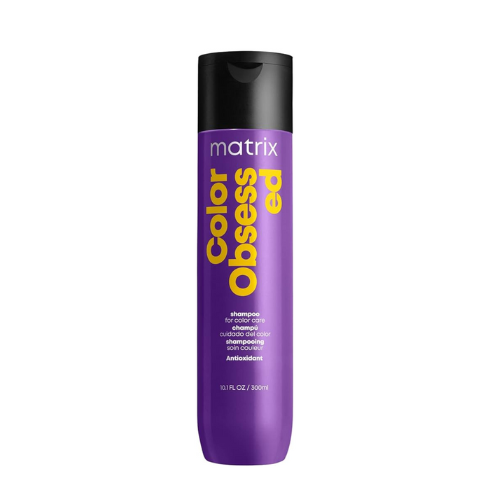 Matrix Total Results Color Obsessed Shampoo 300ml is a shampoo that helps maintain lasting, brilliant hair colour by renewing and preserving moisture to strengthen porous, damaged hair.