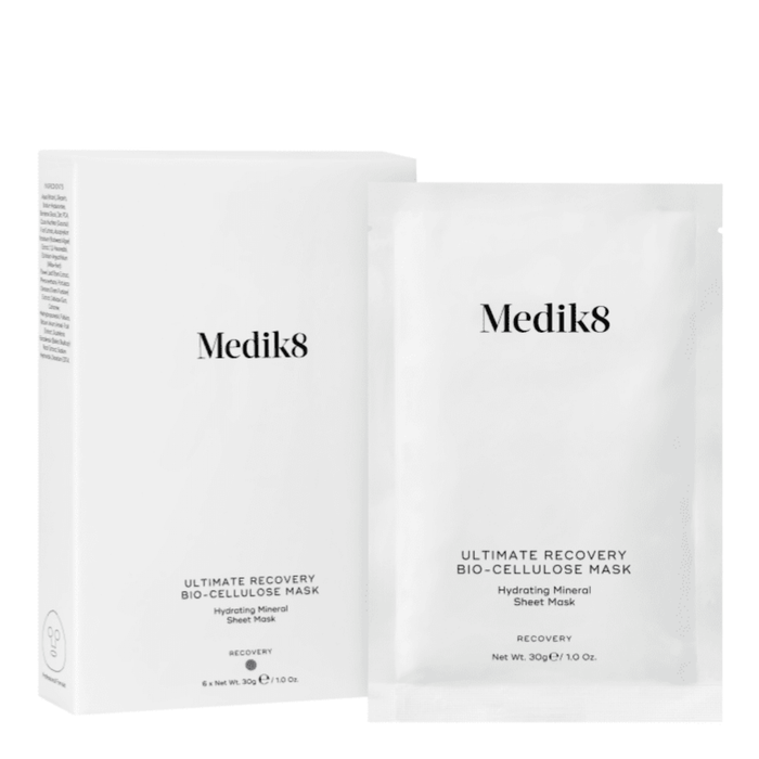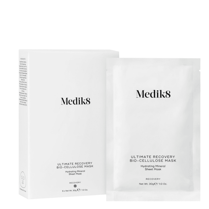 Medik8 Ultimate Recovery Bio Cellulose Mask 6 Pack is a deeply soothing and nourishing bio-cellulose mask that provides intense hydration to calm and restore even the most sensitive of skin types.