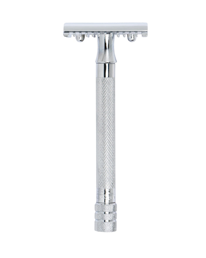 The Merkur 25C Long Handle Safety Razor Chrome combines classic design with modern functionality, offering an exceptional shaving experience. Crafted with precision in Germany, this razor features a long handle for better grip and control, making it ideal for those who prefer a more traditional wet shave. Its chrome finish not only adds a touch of elegance but also ensures durability and resistance to corrosion. Whether you're a seasoned wet shaver or new to the world of safety razors, the Merkur 25C promises a close, irritation-free shave every time.