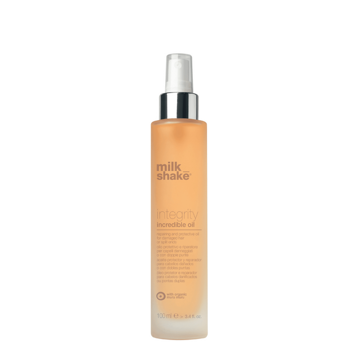 milk_shake Integrity Incredible Oil 100ml is an intensive no rinse treatment formulated to counteract and prevent split ends, with a high-tech film-forming polymer that protects the hair from heat, straighteners or curling wands, and other stress factors that damage the hair.