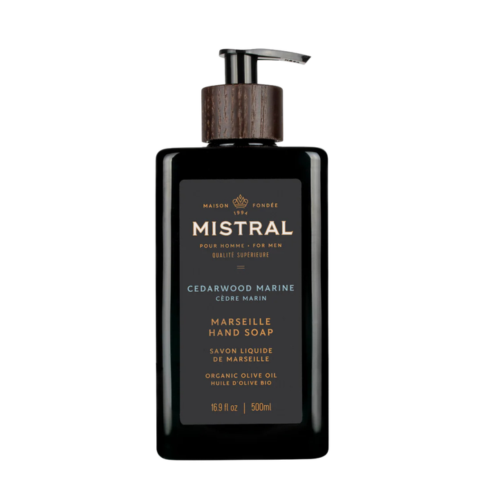 What are the features and benefits of Mistral Cedarwood Marine Hand Soap 500ml?
