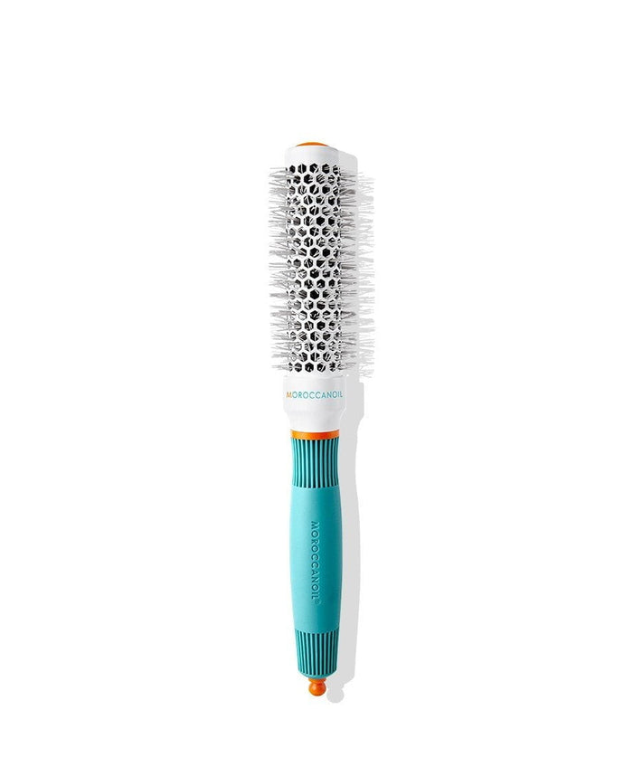 Moroccanoil Ceramic 25mm Round Brush provides a comfortable and effortless experience for both stylist and client, with brush bristles containing ions that repel water and ceramic that retains heat more efficiently than other materials, resulting in healthy, shiny hair with body.