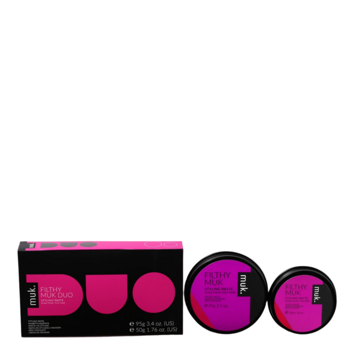 The Muk Filthy Muk 95g + 50g Duo Pack offers a firm hold with a gritty finish for your styling needs.