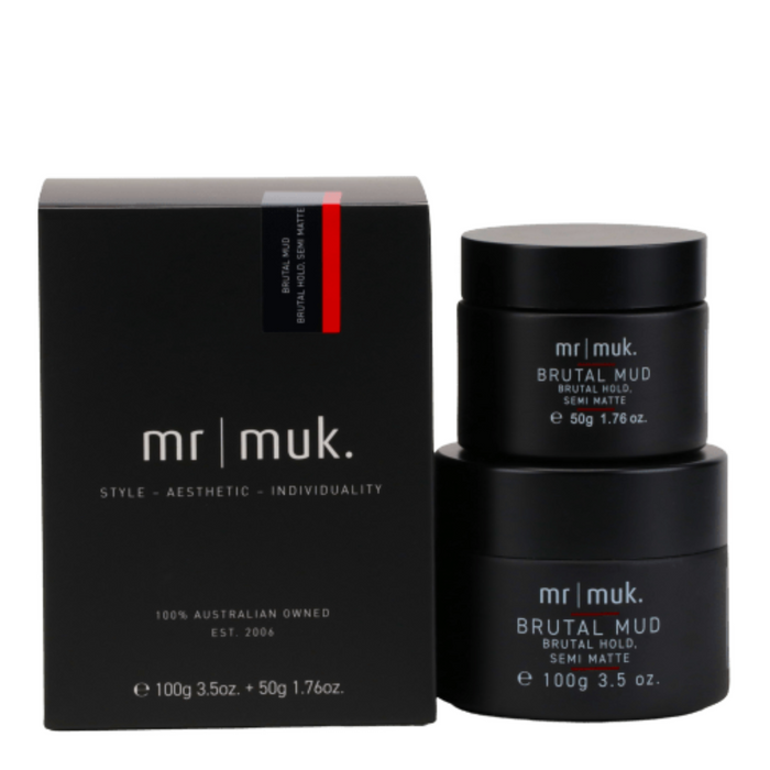 Muk Mr Muk Brutal Mud 100g + 50g Duo Pack is a low sheen, strong hold mud that offers enduring texture and intense definition for rugged styles that last the distance.