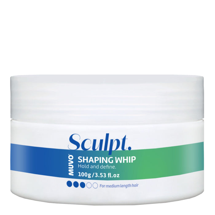 The MUVO Sculpt Shaping Whip 100g offers medium hold with a natural shine for versatile styling.