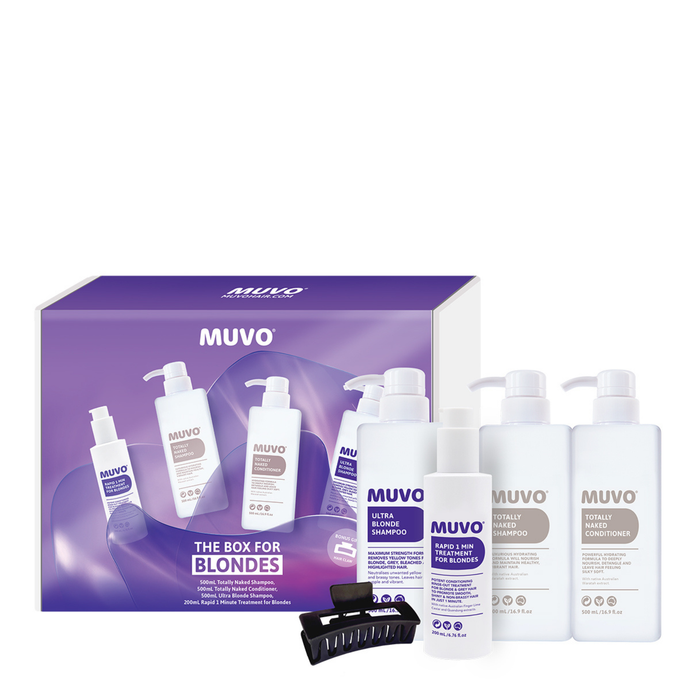 The Muvo The Box For Blondes Pack is the ultimate hair care collection designed specifically for maintaining and enhancing blonde hair.