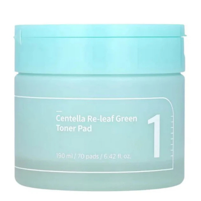 The Numbuzin No.1 Centella Re-Leaf Green Toner 70 Pads is a soothing and hydrating skincare solution.