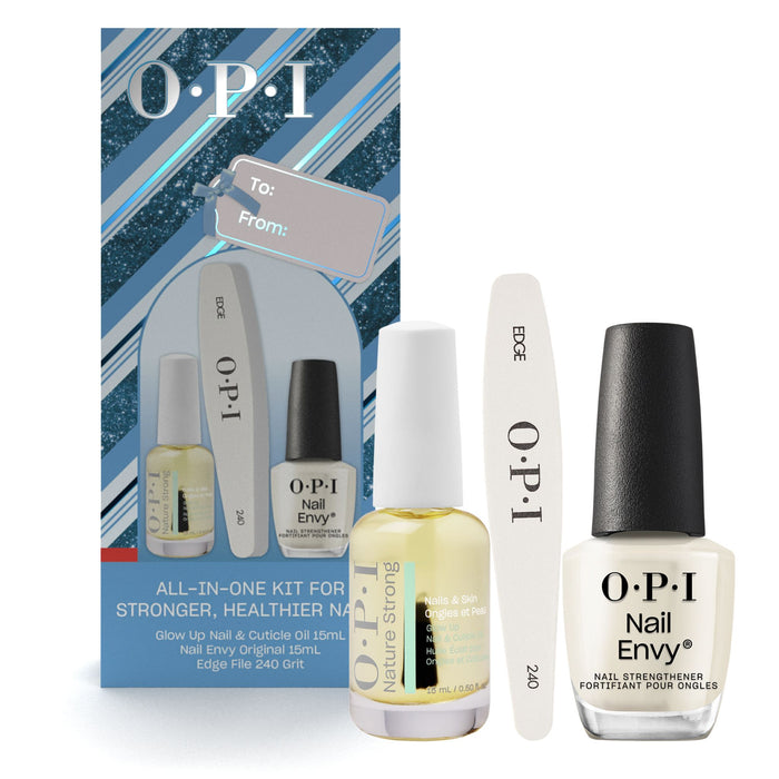 This limited edition gift set from OPI includes everything you need to maintain healthy, beautiful nails. Featuring a nourishing nail and cuticle oil, a strengthening nail treatment, and a high-quality nail file, this set is designed to provide comprehensive nail care. Whether you're looking to repair damaged nails or simply maintain their natural beauty, this gift set has you covered.