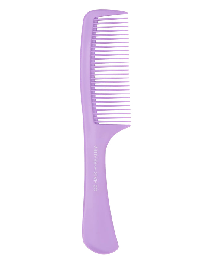 The Oz Essentials Detangle Comb - Purple is a must-have tool for effortlessly managing and styling your hair.
