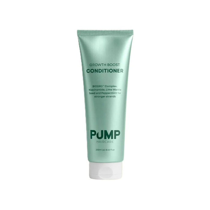 Pump Growth Conditioner is a nourishing and hydrating Sulphate and Paraben-Free, Australian-Made conditioner made with our unique BioGro™ formula. Includes Peppermint Leaf Extract and Hydrolyzed Wheat Protein. You'll love the light peppermint scent that makes your hair feel refreshed. 100% colour safe and fine to use with hair extensions or keratin treated hair.