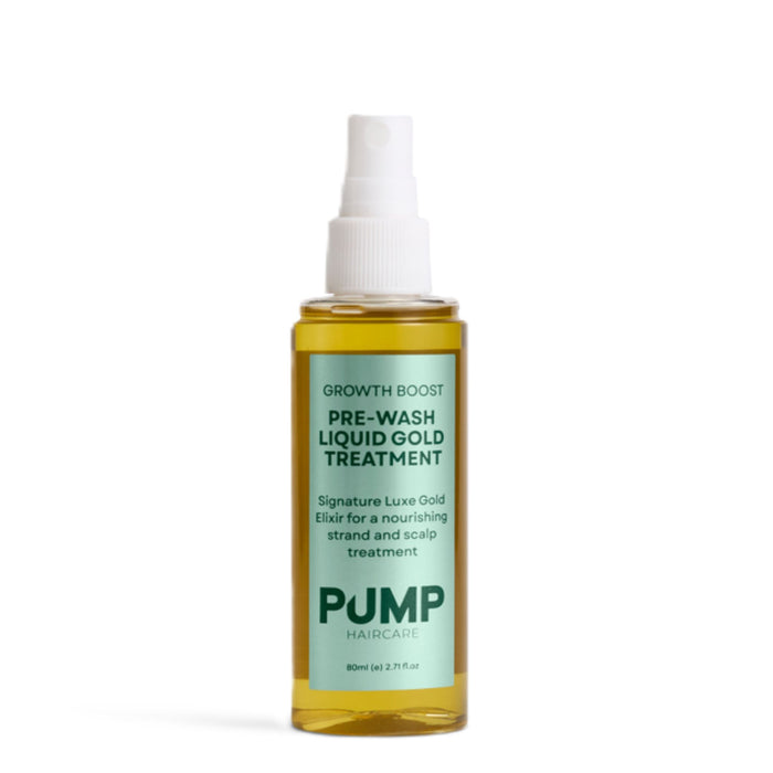 The Pump Haircare Growth Boost Pre-Wash Liquid Gold Treatment 80ml is a luxurious elixir designed to nourish and revitalize your hair and scalp.