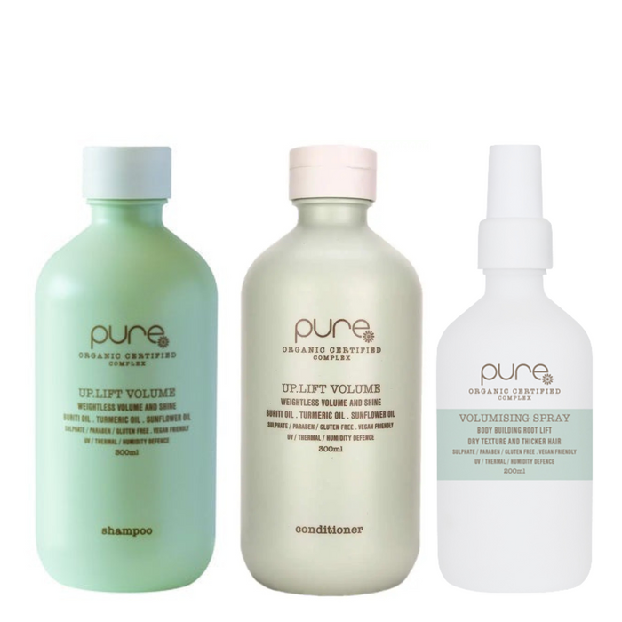 The Pure Up.Lift Volume Bath Trio Bundle with Volumising Spray is your go-to solution for achieving voluminous, bouncy hair.