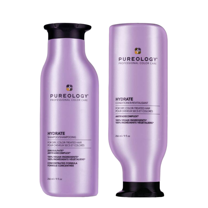 Pureology Hydrate Conditioner 266ml: This rich conditioner deeply moisturizes and detangles hair, making it easier to manage. Formulated with the same natural ingredients as the shampoo, it works to replenish and maintain the hair's moisture balance. The AntiFade Complex in the conditioner also helps to protect and extend the life of your hair color.