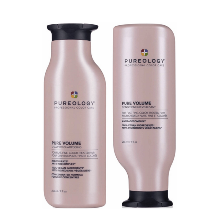 Pureology Pure Volume Shampoo and Conditioner Duo Bundle is a haircare bundle that includes Pureology Pure Volume Shampoo and Pureology Pure Volume Conditioner, designed to deliver body-boosting formulas that weightlessly elevate strands for a light, airy, full-bodied finish and extraordinary colour protection.