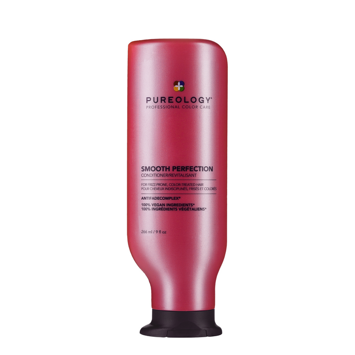 Pureology Smooth Perfection Conditioner 266ml smooths and restores manageability for frizzy, colour-treated hair with key ingredients Camellia and Shea Butter and a signature aromatherapy blend of Cocoa, Marshmallow Accord, and Woody.