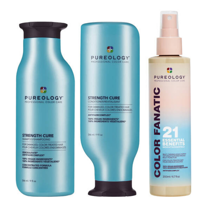 The Pureology Strength Cure Daily Damage Protection Trio Bundle is your ultimate solution for repairing and protecting damaged hair.