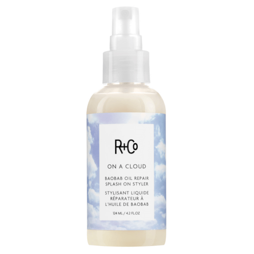R+Co ON A CLOUD Baobab Repair Splash On Styler 124ml is a leave-on styling masque that delivers shine, softness, and repair while strengthening and protecting hair from pollutants.