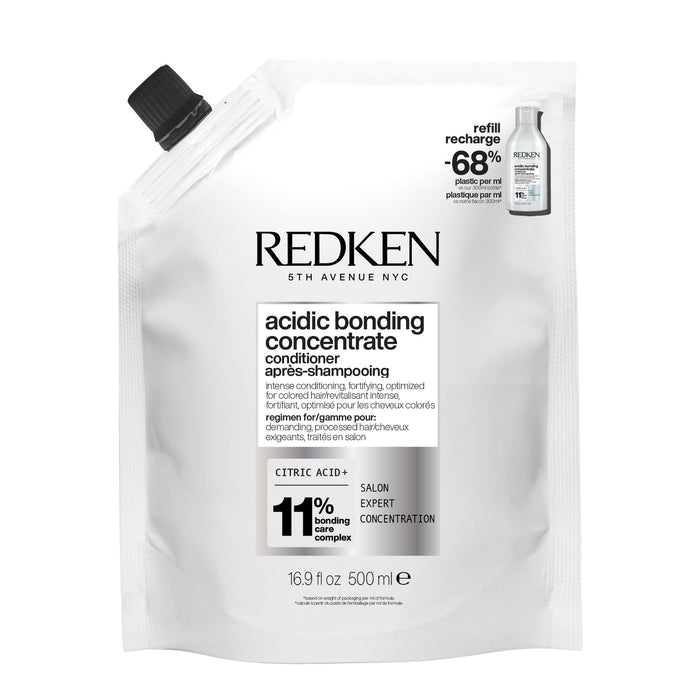 The Redken Acidic Bonding Concentrate Conditioner Refill 500ml is a powerful hair care solution designed to strengthen and nourish your hair.
