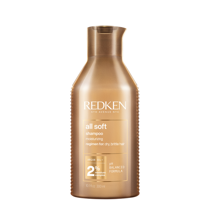 Prescribed for softer hair and formulated with Argan Oil, Redken's All Soft Shampoo gently cleanses dry, rough hair while providing moisture to a create 15x more conditioned* look and feel. The enriching Moisture Complex is a smart, targeted delivery system that treats hair from the root to the core to the tip, giving all 3 levels of the hair strand the nourishment needed for healthy hair.