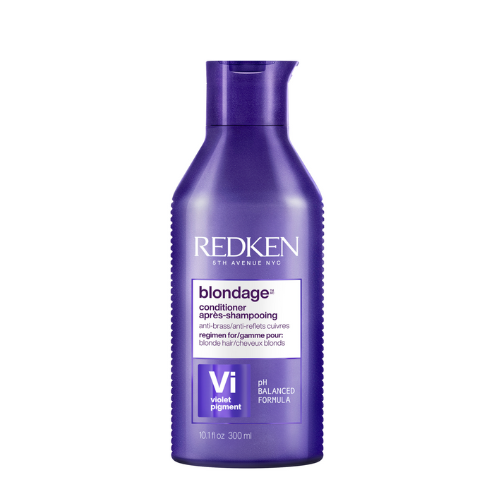 Redken Color Extend Blondage Color Depositing Purple Conditioner 300ml is a colour-depositing and protecting purple conditioner and hair toner for blonde and highlighted hair that are experiencing warmth (ie brass).