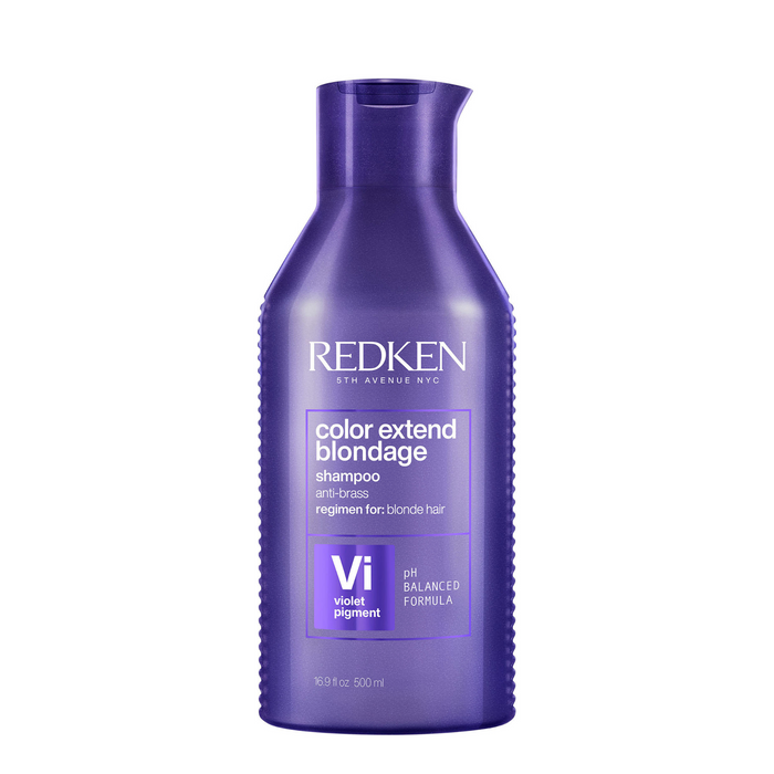 Redken Color Extend Blondage Color Depositing Purple Shampoo 500ml is a colour-depositing purple shampoo that strengthens and repairs blonde and highlighted hair while removing unwanted brassiness and leaving hair colour cool and bright.