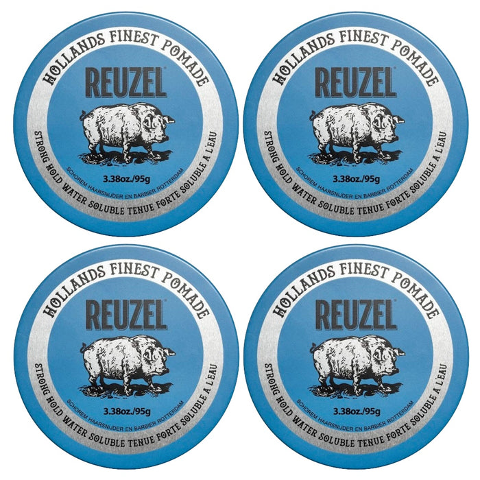 The Reuzel Blue Pomade 95g Quad Bundle is the ultimate styling solution for those seeking a strong hold with a high shine finish.