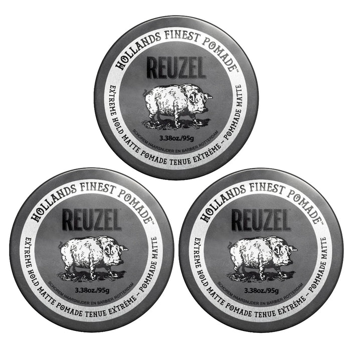 The Reuzel Extreme Hold Matte Pomade 95g Trio Bundle is perfect for achieving a strong, matte finish with ease.