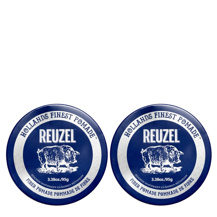 The Reuzel Fiber Pomade 95g Duo Bundle is perfect for achieving a strong, pliable hold with a matte finish.
