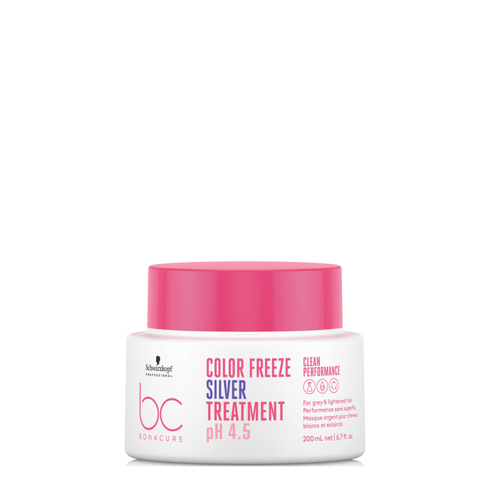Schwarzkopf Professional BC Clean Performance Color Freeze Silver Treatment 200ml is an intensely restoring, creamy treatment for color-treated hair that neutralizes unwanted warm undertones and revives cool tones while preventing color fading.