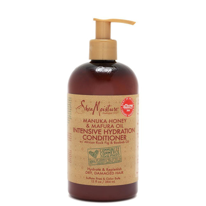 Shea Moisture Manuka Honey & Mafura Oil Intensive Hydration Conditioner 384ml is a rinse-out conditioner that instantly softens and detangles while infusing hair with intense moisture and shine-enhancing nutrients.