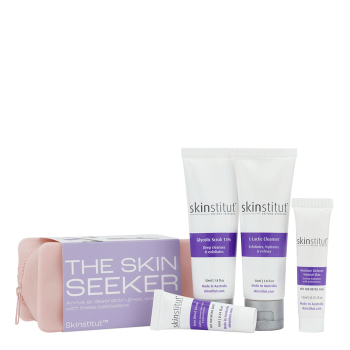 The Skinstitut The Skin Seeker is the ultimate skincare travel essentials collection that includes 4 of their cult classics in convenient travel sizes, perfect for any trip or staycation.