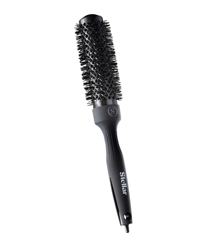 The Stellar HeatSense Round Brush - 33mm is a versatile styling tool designed to enhance your hair's natural shine and volume.