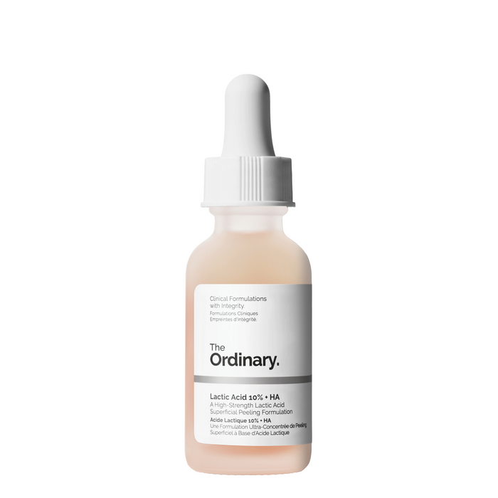 The Ordinary Lactic Acid 10% + HA 2% 30ml is an alpha hydroxy acid (AHA) that offers superficial exfoliation to enhance smooth skin texture and radiance.