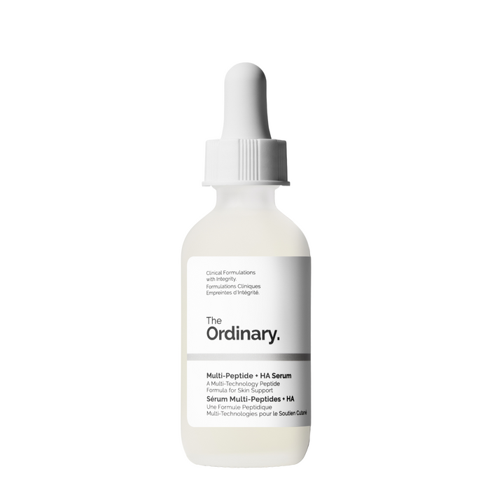 The Ordinary Multi-Peptide + HA Serum 60ml is a multi-technology peptide formula that targets multiple signs of aging at once to improve skin smoothness and support skin health.