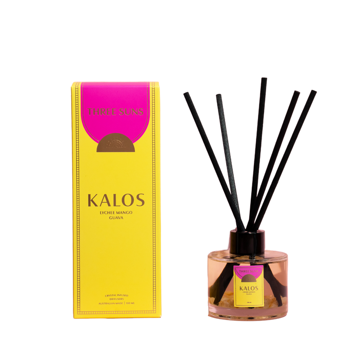 Experience the enchanting aroma of the Three Suns Kalos Crystal Diffuser Of Prosperity 100ml - Lychee Mango & Guava.