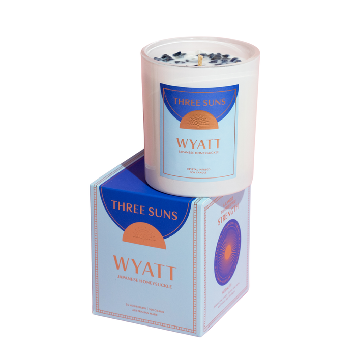 Three Suns Wyatt Crystal Infused Candle Of Strength 300g - Japanese Honeysuckle