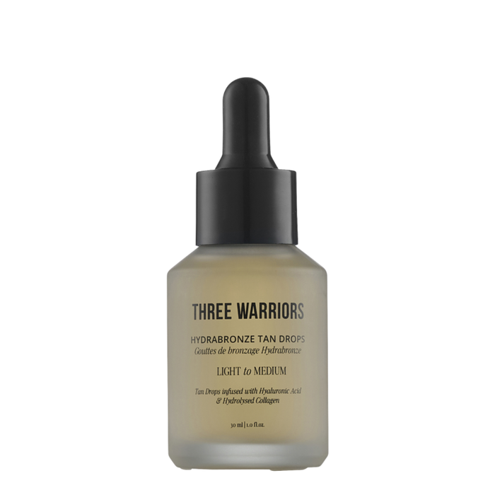 The Three Warriors Hydrabronze Tan Drops 30ml - Light to Medium is a luxurious self-tanning solution designed to give your skin a natural, sun-kissed glow.