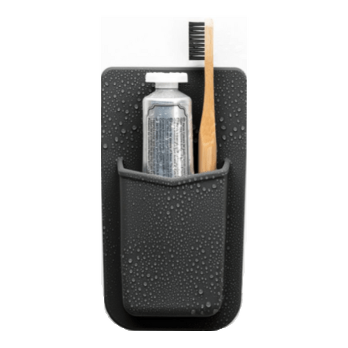 The Tooletries The Henry Essentials Holder in Charcoal is a silicone holder that fits your toothbrush and toothpaste perfectly, with drainage holes for use in the shower and a super-grip-silicone technology that sticks to any shiny surface.