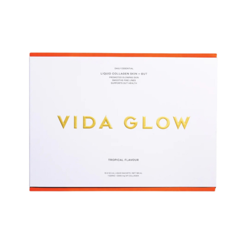 Vida Glow Liquid Collagen Skin + Gut Tropical 15 x 12.5ml Sachets is a premium supplement designed to enhance skin and gut health.