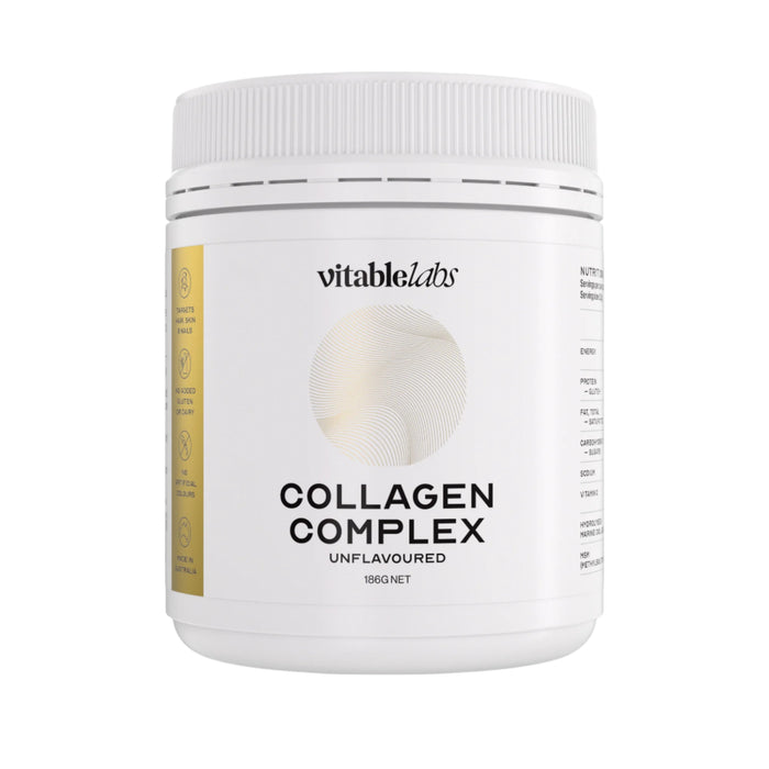 The VitableLabs Collagen Complex 186g - 30 serves is a premium supplement designed to support skin, hair, and nail health.