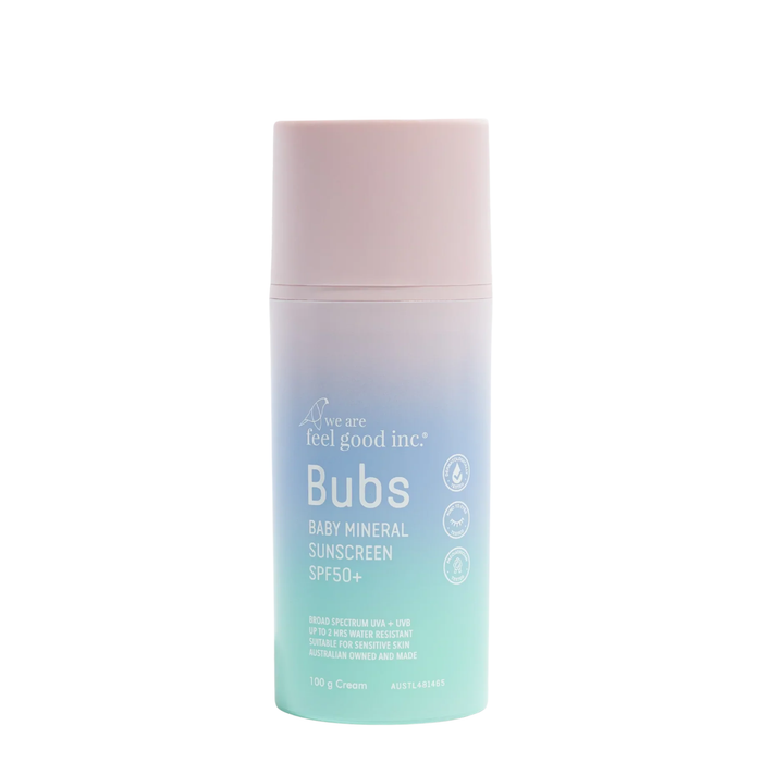 The We Are Feel Good Inc. Bubs Baby Mineral Sunscreen SPF50+ 100g is a gentle and effective sunscreen designed specifically for babies.