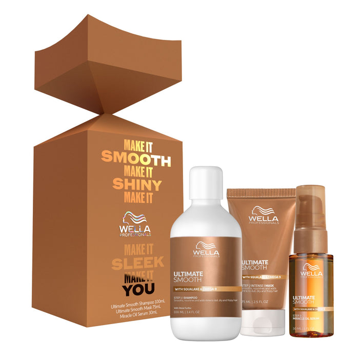 The Wella Professionals Ultimate Smooth Travel Cracker Trio Pack is the perfect solution for achieving salon-smooth hair on the go.
