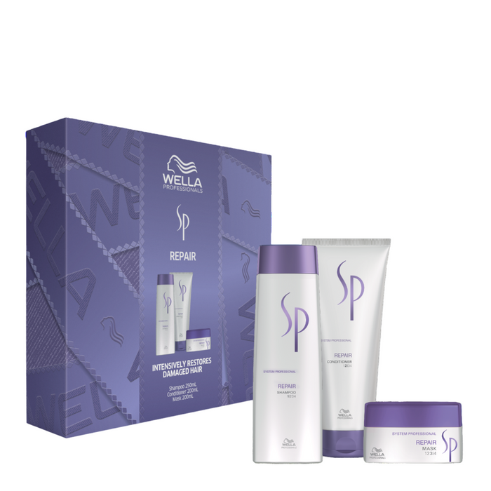 The Wella SP Repair Trio Pack is a comprehensive hair care solution designed to repair and rejuvenate damaged hair.