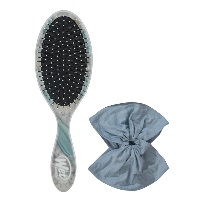 This kit combines the innovative design of the Original Detangler with a stylish headwrap, making it perfect for anyone looking to maintain smooth, tangle-free hair while adding a touch of elegance to their look. The Wet Brush - Aqua Gemstone Kit is designed to glide through tangles with ease, reducing breakage and pain, and the headwrap adds a chic finishing touch to any hairstyle.