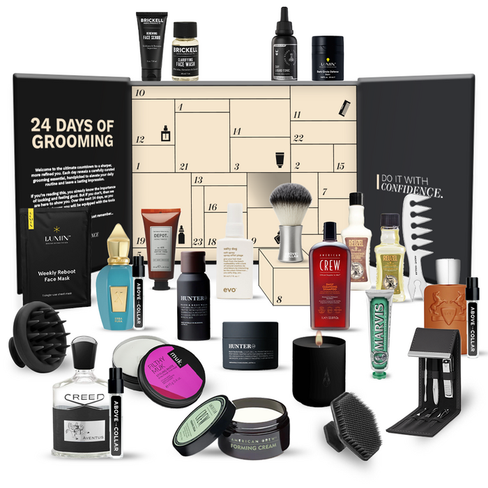What is included in the Above The Collar Men's Grooming Advent Calendar?