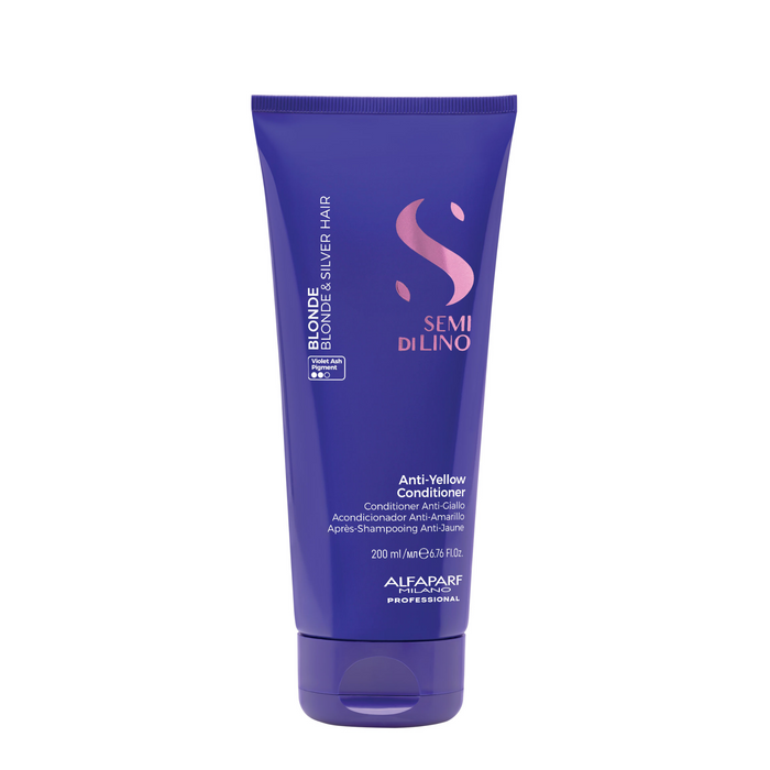 Alfaparf Milano Semi di Lino Blonde Anti-Yellow Conditioner 200ml is a revitalizing and moisturizing conditioner that detangles hair and neutralizes unwanted yellow tones.