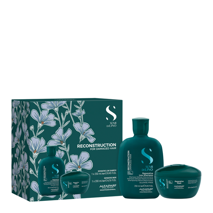 The Alfaparf Milano Semi Di Lino Reconstruction Reparative Duo Pack is designed to restore and strengthen damaged hair.