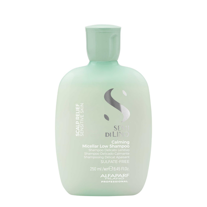 Alfaparf Milano Semi Di Lino Scalp Relief Calming Micellar Low Shampoo 250ml is a soothing low shampoo that gently cleanses sensitive scalps, counteracting feelings of discomfort.