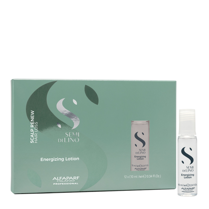 Alfaparf Milano Semi Di Lino Scalp Renew Energizing Lotion 12 X 10ml is a hair lotion that strengthens, redensifies, and stimulates growth while leaving hair feeling fresh and not weighed down.