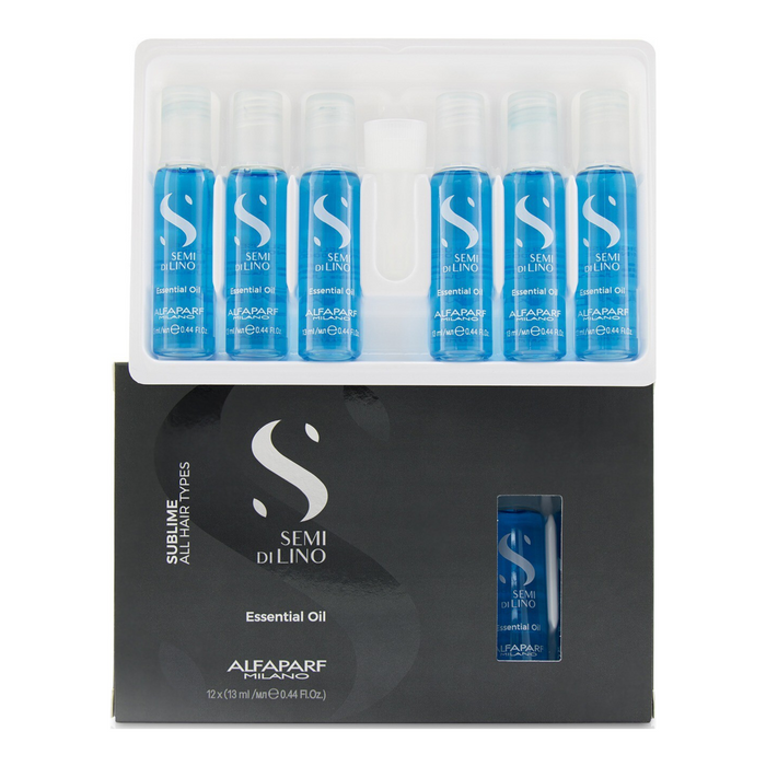 The Alfaparf Milano Semi di Lino Sublime Essential Oil Treatment 12x13ml is a luxurious hair treatment designed to revitalize and enhance your hair's natural beauty.